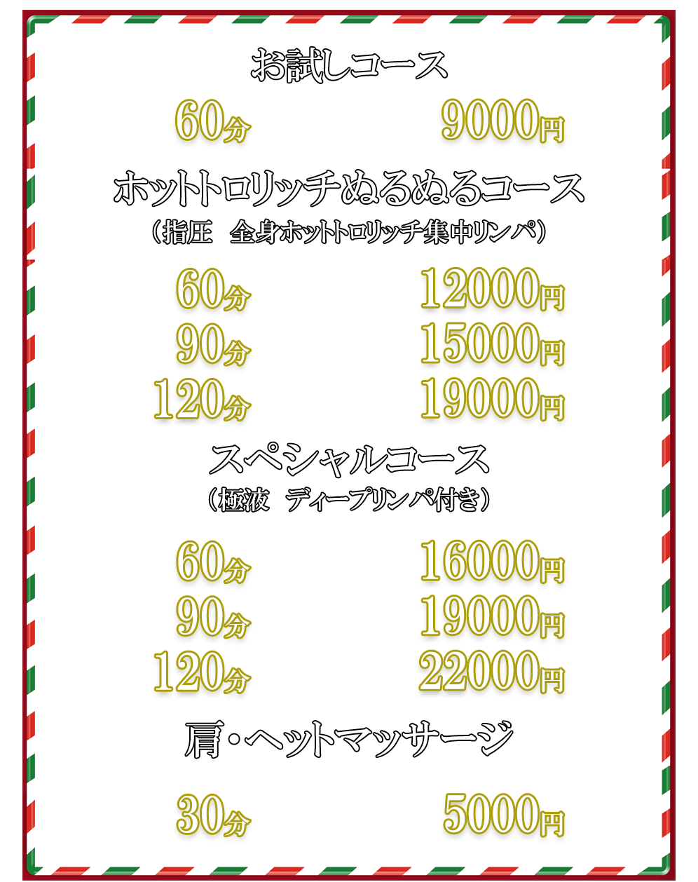 | 待 遇 | 完全全額日払い制 優しく笑顔でお客様に接客できる方、おしゃべりが好きな方。 出勤後に一時外出することもできます。 指圧整体等の経験者は優遇させていただきます。 |